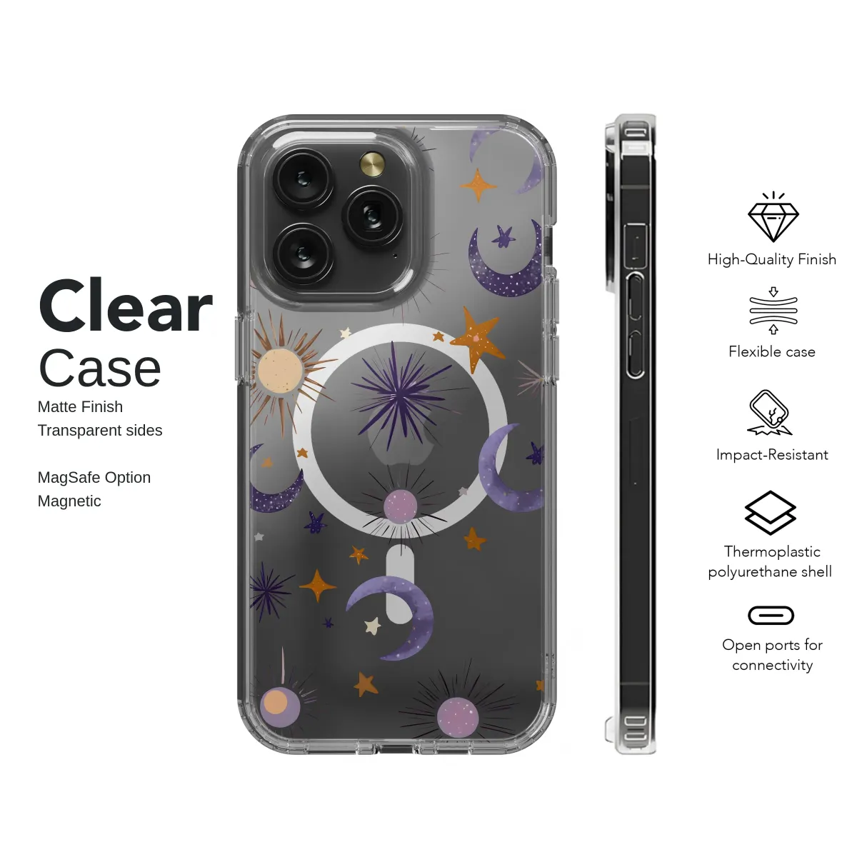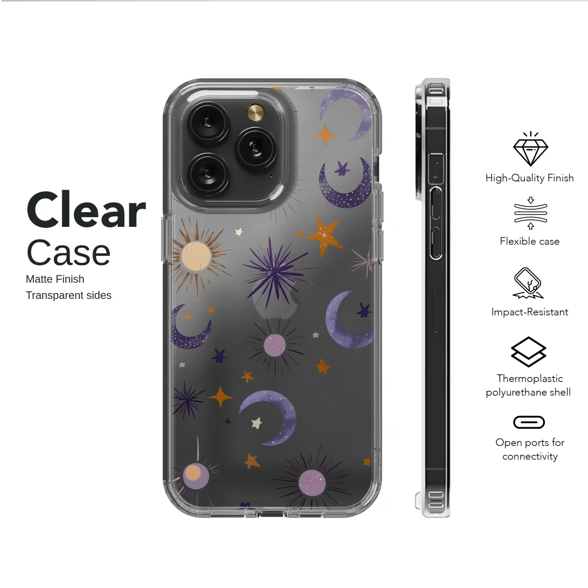 Clear Clear Celestial Sun and Moon Design Cosmic Night Sky Pattern Phone Case Cover for iPhone 17 Pro Max 16 15 13 Samsung S26 S25 Pixel 9431 - Image 1