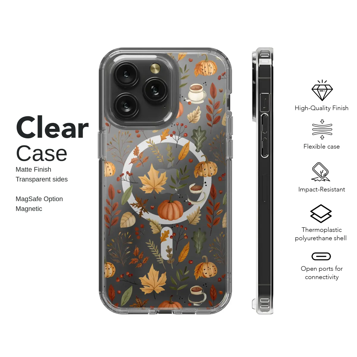 Clear Clear Cozy Autumn Pumpkin Leaf Pattern Phone Case Cover for iPhone 17 Pro Max 16 15 Plus 14 13 Mini Samsung S26 S25 Google Pixel 10 9 9482 - Image 1
