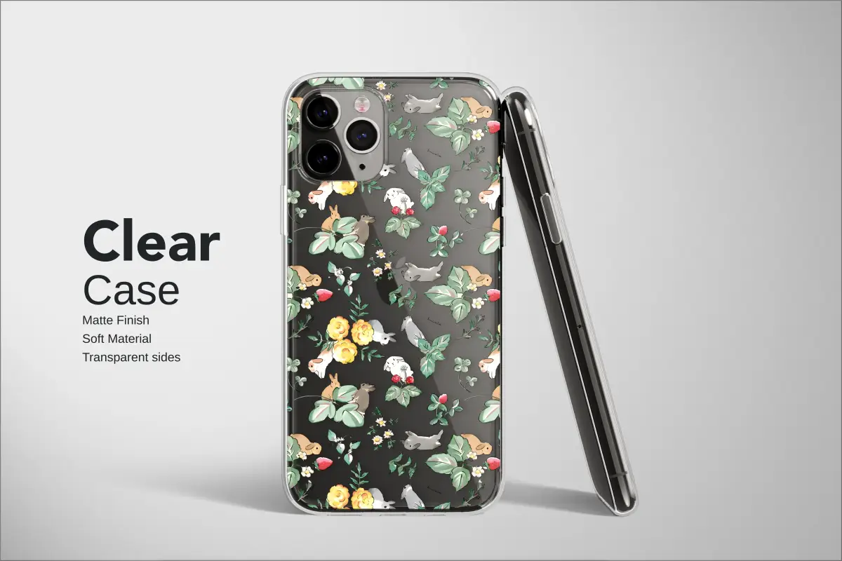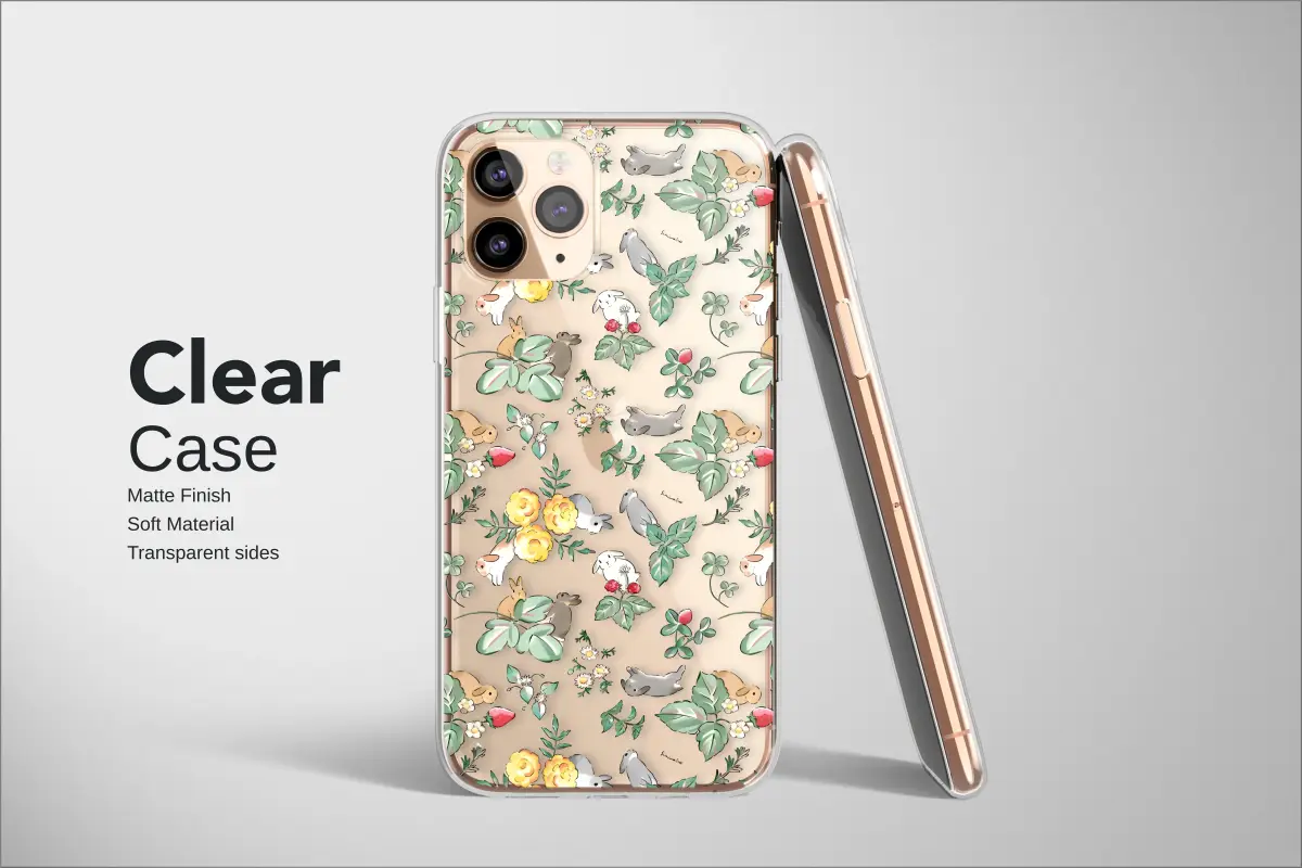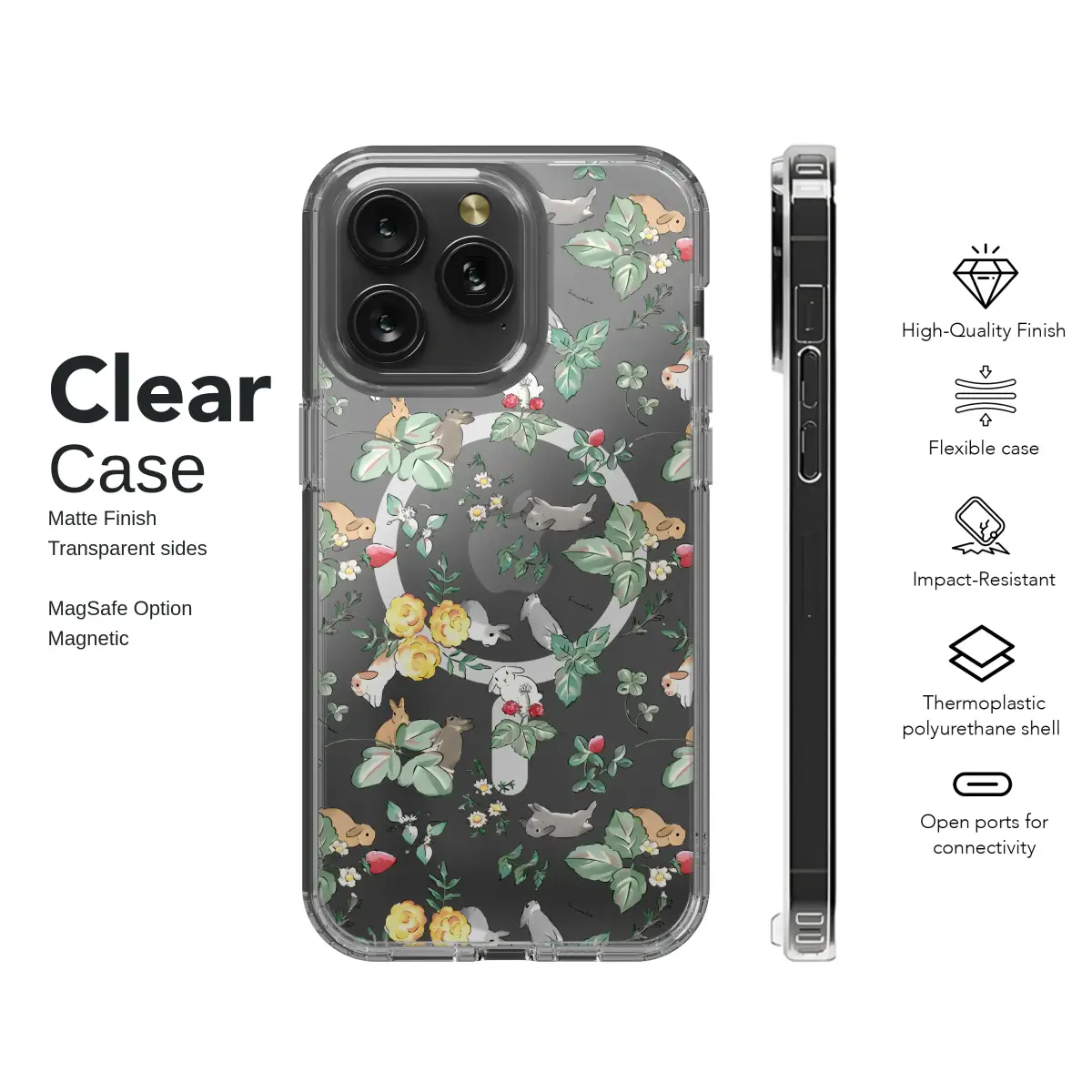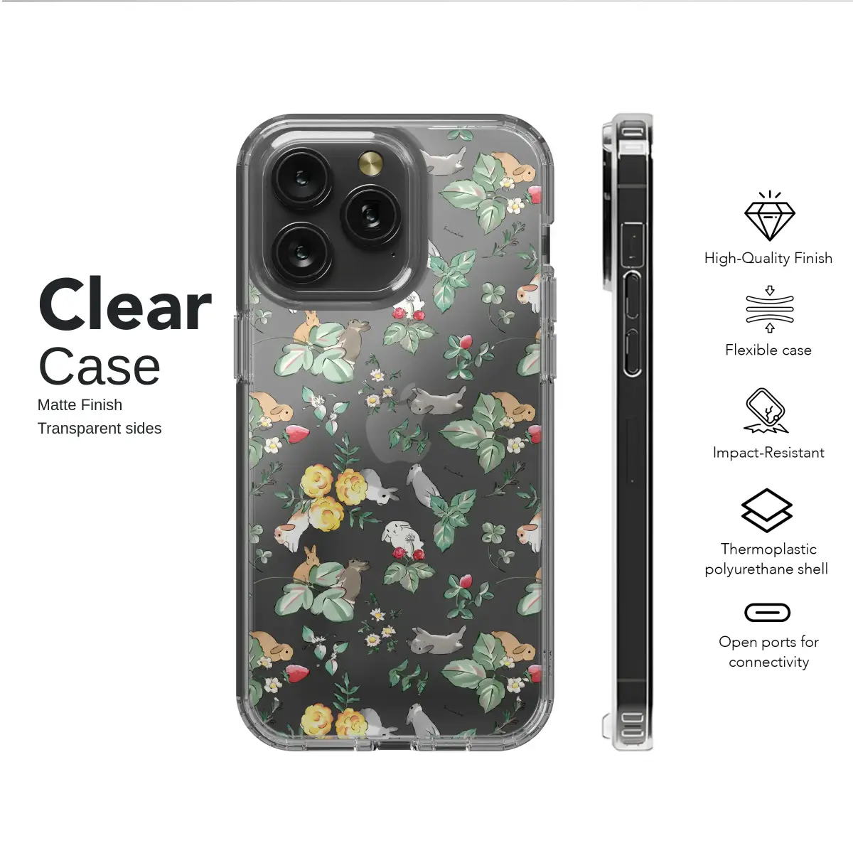 Clear Clear Cute Bunny Floral Strawberry Garden Pattern Phone Case Cover for iPhone 17 Pro Max 16 15 13 Samsung S26 S25 Pixel 10085