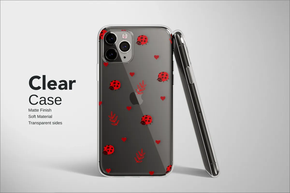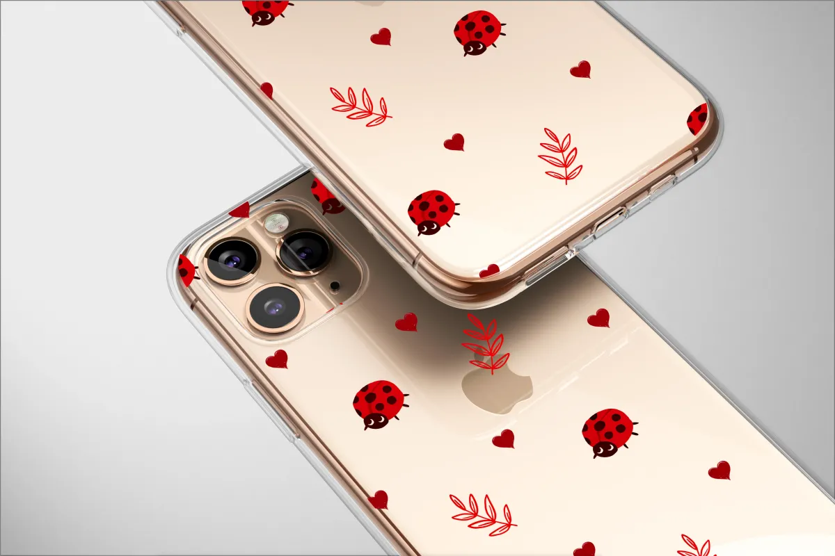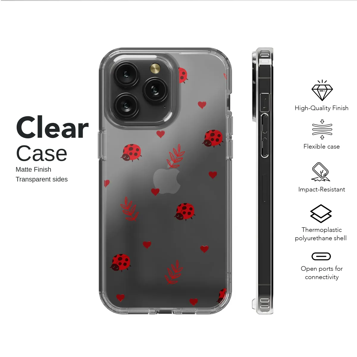 Clear Clear Cute Ladybug Heart Pattern Red Black Nature Lover Gift Phone Case Cover for iPhone 17 Pro Max 16 15 13 Samsung S26 S25 Pixel 9484