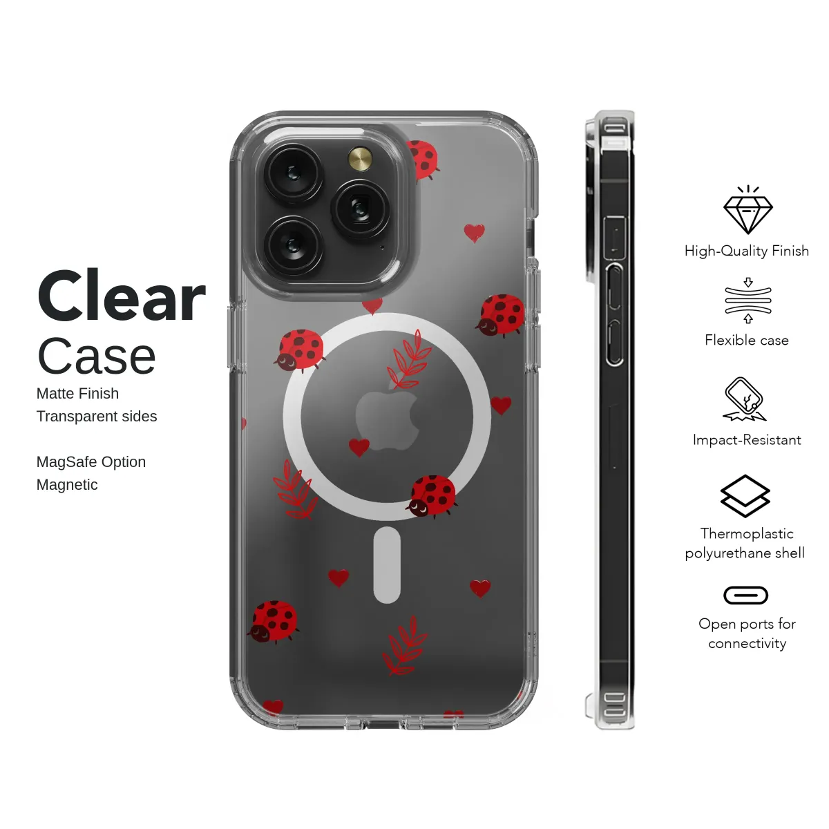 Clear Clear Cute Ladybug Heart Pattern Red Black Nature Lover Gift Phone Case Cover for iPhone 17 Pro Max 16 15 13 Samsung S26 S25 Pixel 9484 - Image 1