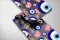 Dive into a whimsical underwater world with this unique evil eye and sea life design. This charming pattern blends the ancient protective power of the Mediterranean evil eye amulet with delightful illustrations of nautical creatures. Discover colorful seahorses, graceful jellyfish, detailed seashells, and vibrant coral scattered among the classic blue and white talismans for a touch of coastal charm.
