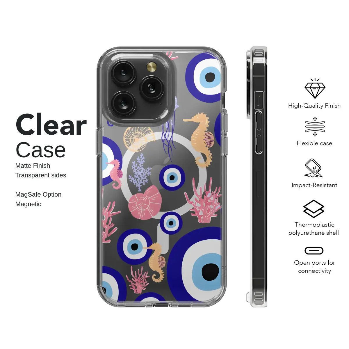 Clear Clear Evil Eye Nautical Pattern with Sea Creatures Phone Case Cover for iPhone 17 Pro Max 16 15 13 Samsung S26 S25 Pixel 10083