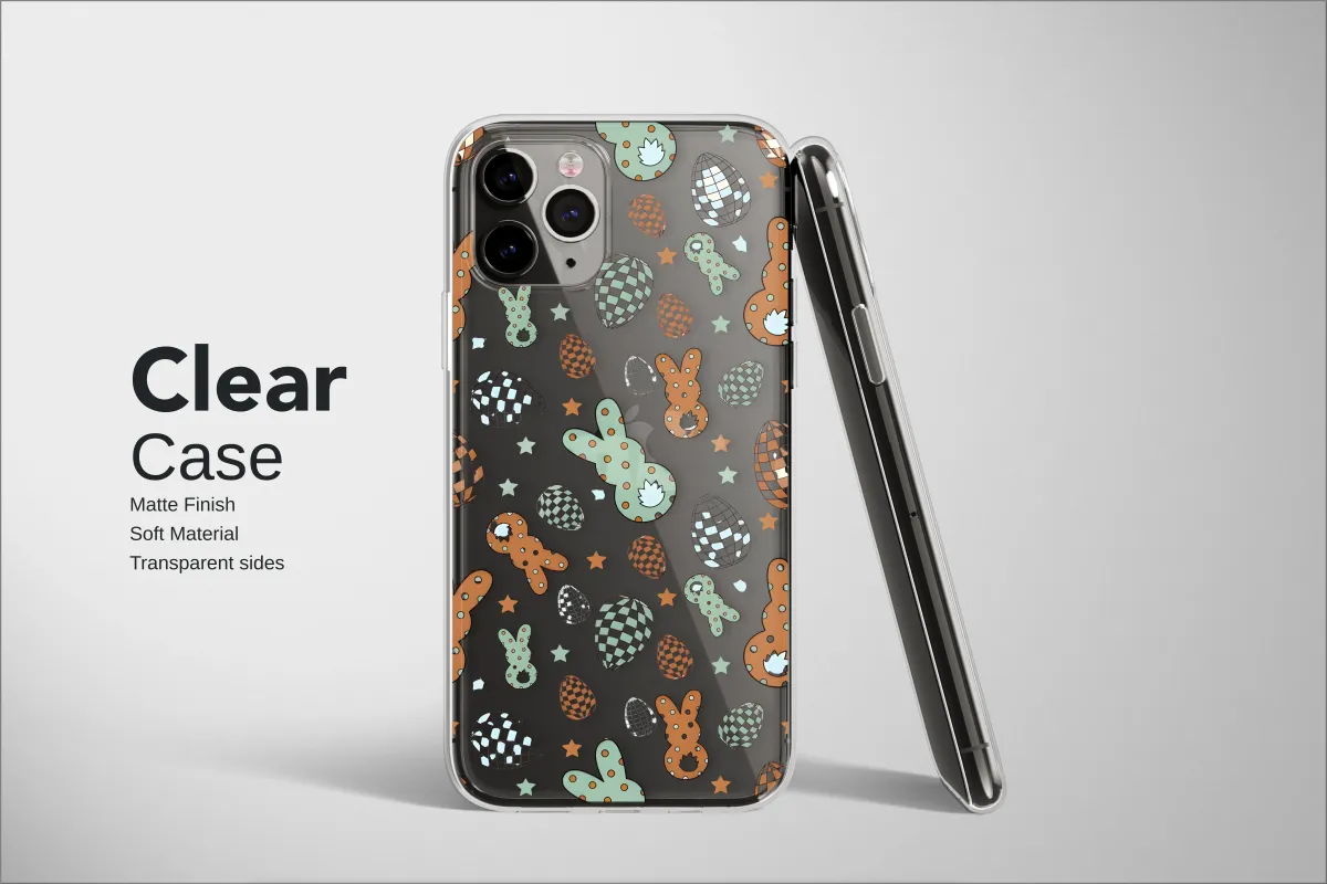 Clear Clear Groovy Easter Bunny Checkered Egg Pattern Phone Case Cover for iPhone 17 Pro Max 16 15 Plus 14 13 Mini Samsung S26 S25 Pixel 10 9 9477 - Image 1