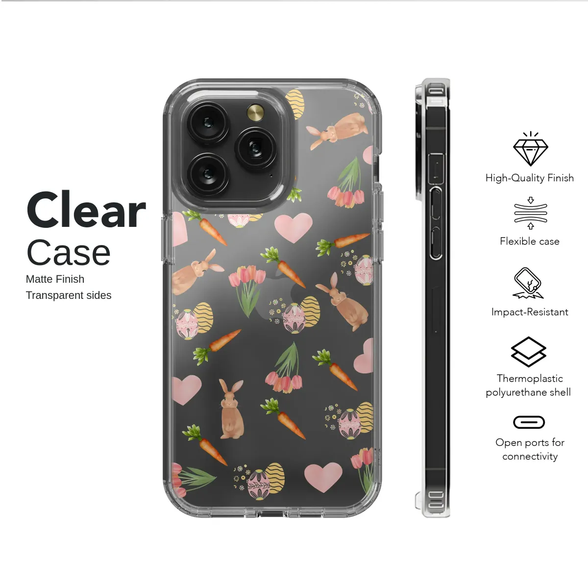 Clear Clear Watercolor Easter Bunny and Carrot Print Phone Case Cover for iPhone 17 Pro Max 16 15 Plus 14 13 Mini Samsung S26 S25 Pixel 10 9 9471