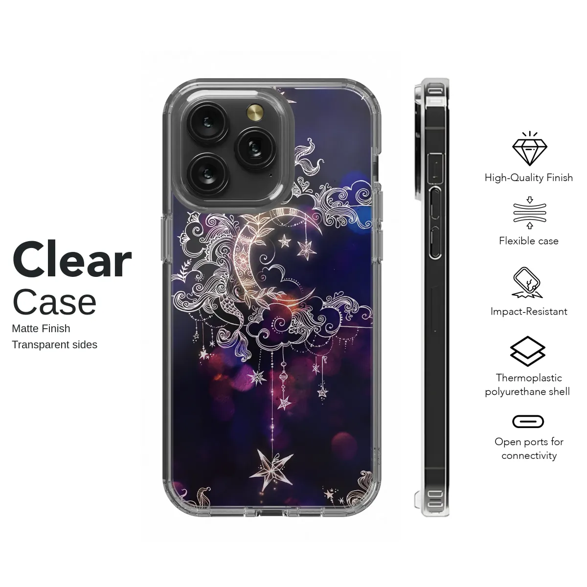 Mystical Celestial Moon and Stars Doodle Art Design Phone Case Cover for iPhone 17 Pro Max 16 15 13 Samsung S26 S25 Pixel 9501 - Image 1