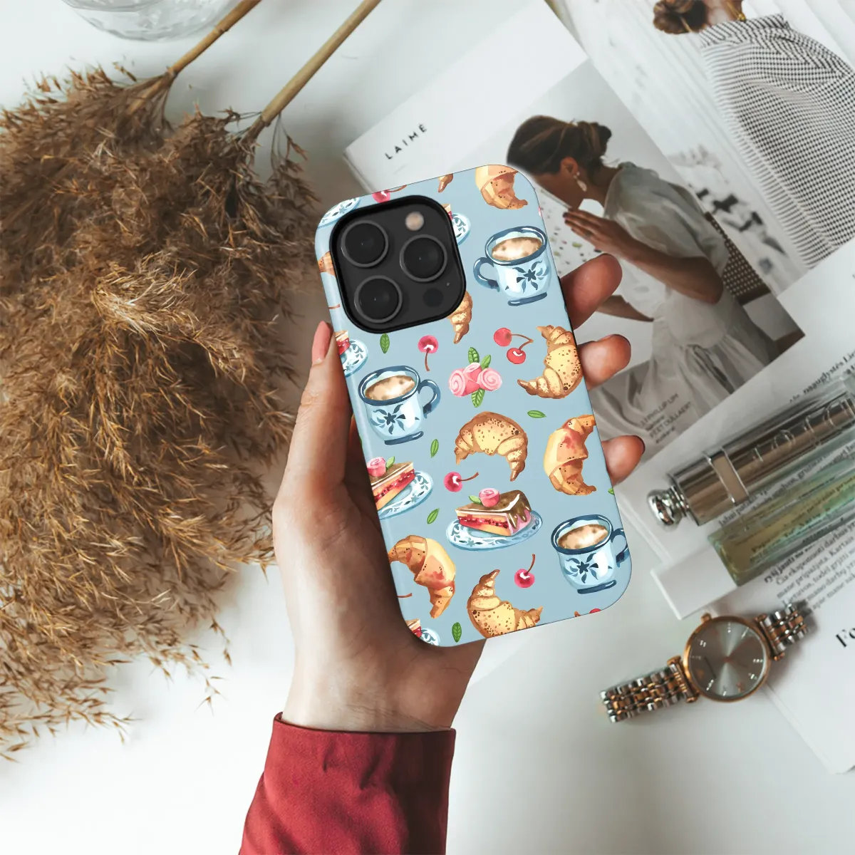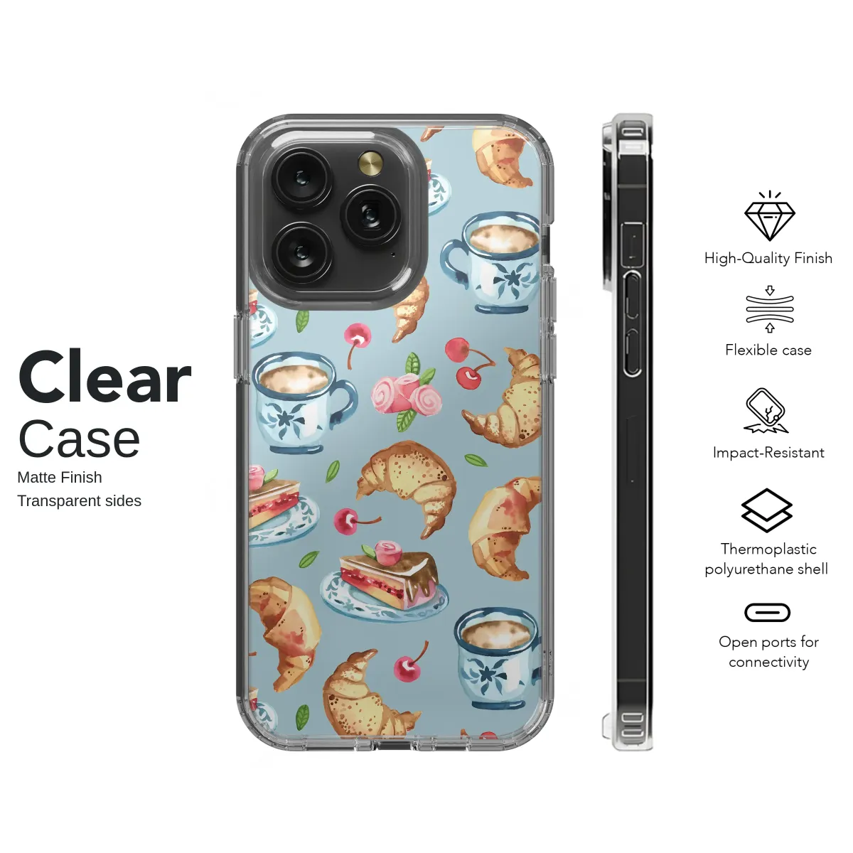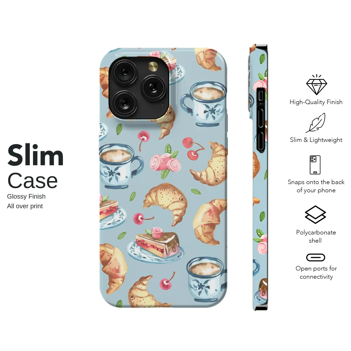 Parisian Cafe Watercolor Pastry And Coffee Design Phone Case Cover for iPhone 17 Pro Max 16 15 13 Samsung S25 S24 Pixel 9309